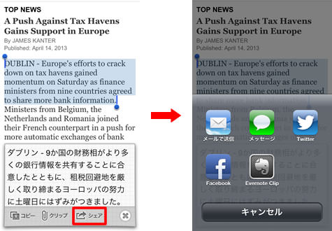 Twitter、Facebook、Evernoteなどにシェアすることもできます。