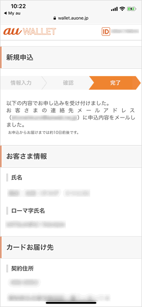 以上で申し込みは完了です。カードが届くまで約10日前後かかります。