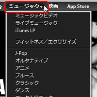 【ミュージック】のタブの左側の逆三角形をクリックするとプルダウンメニューが開きます。